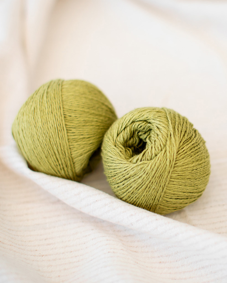 Hieno, useasti kierretty ja hieman epätasainen puuvillasekoitelanka.