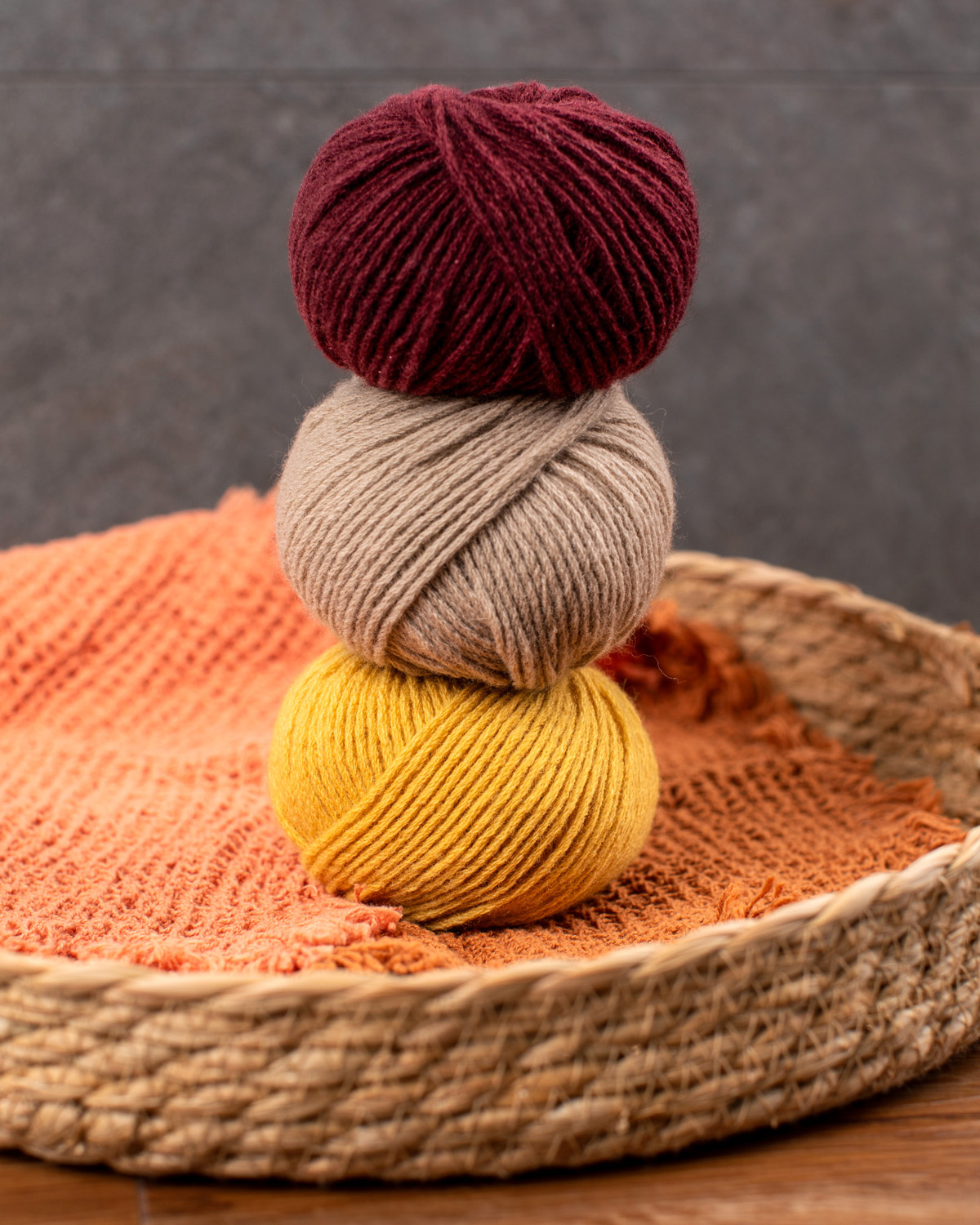 60 % Villa, 25 % Polyamidi, 10 % Akryyli, 5 % Viskoosi