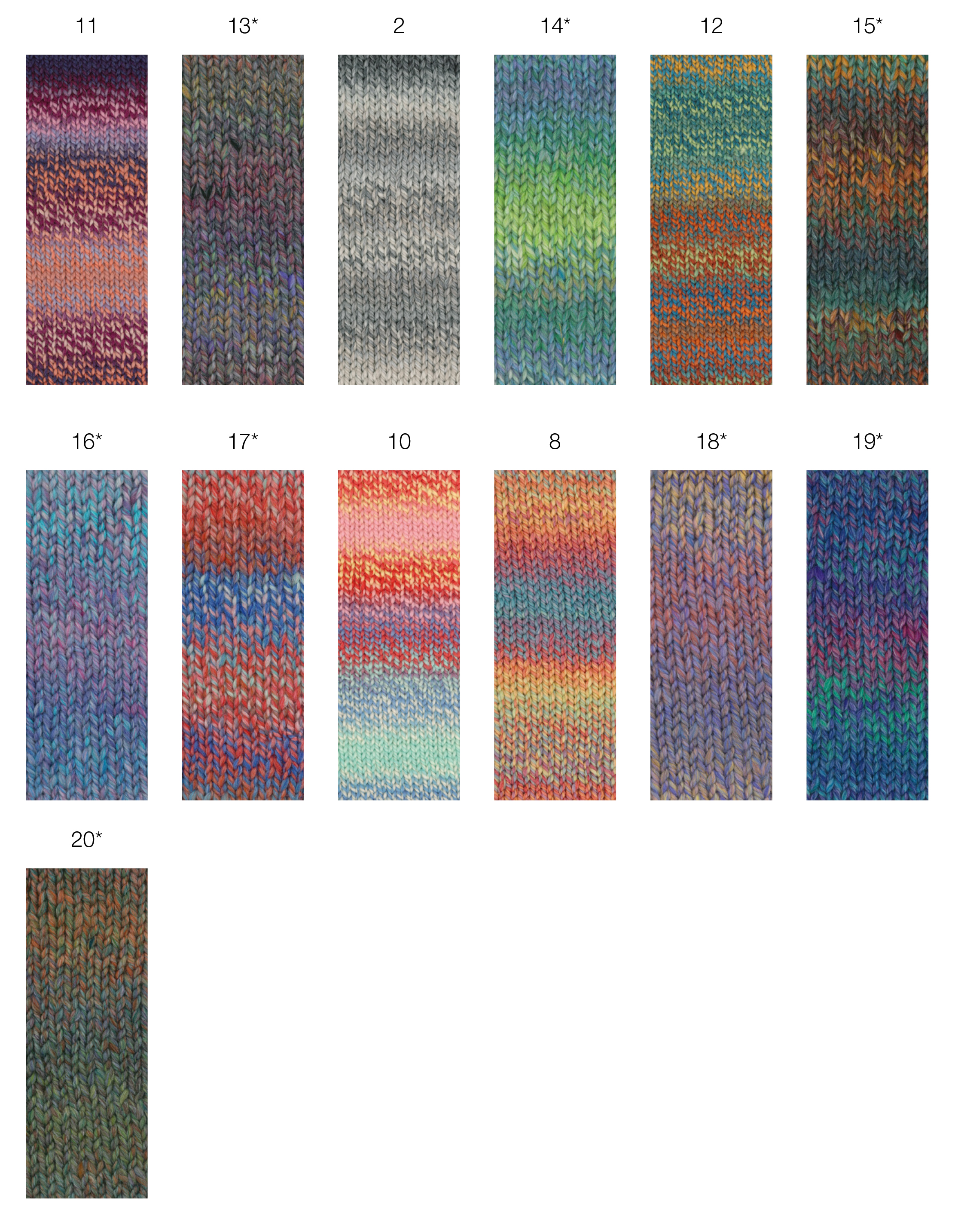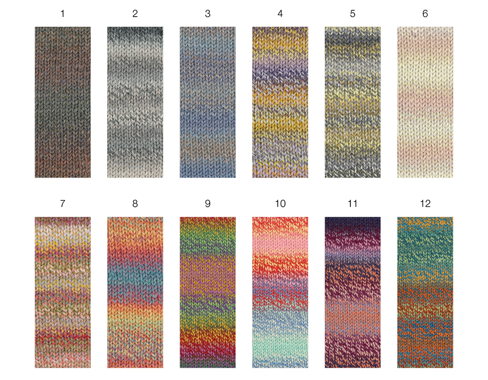 Kolme kertaa kierretty merinolanka, jossa painettuja värivaihteluita.