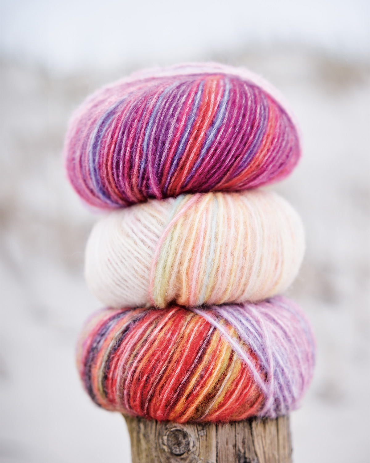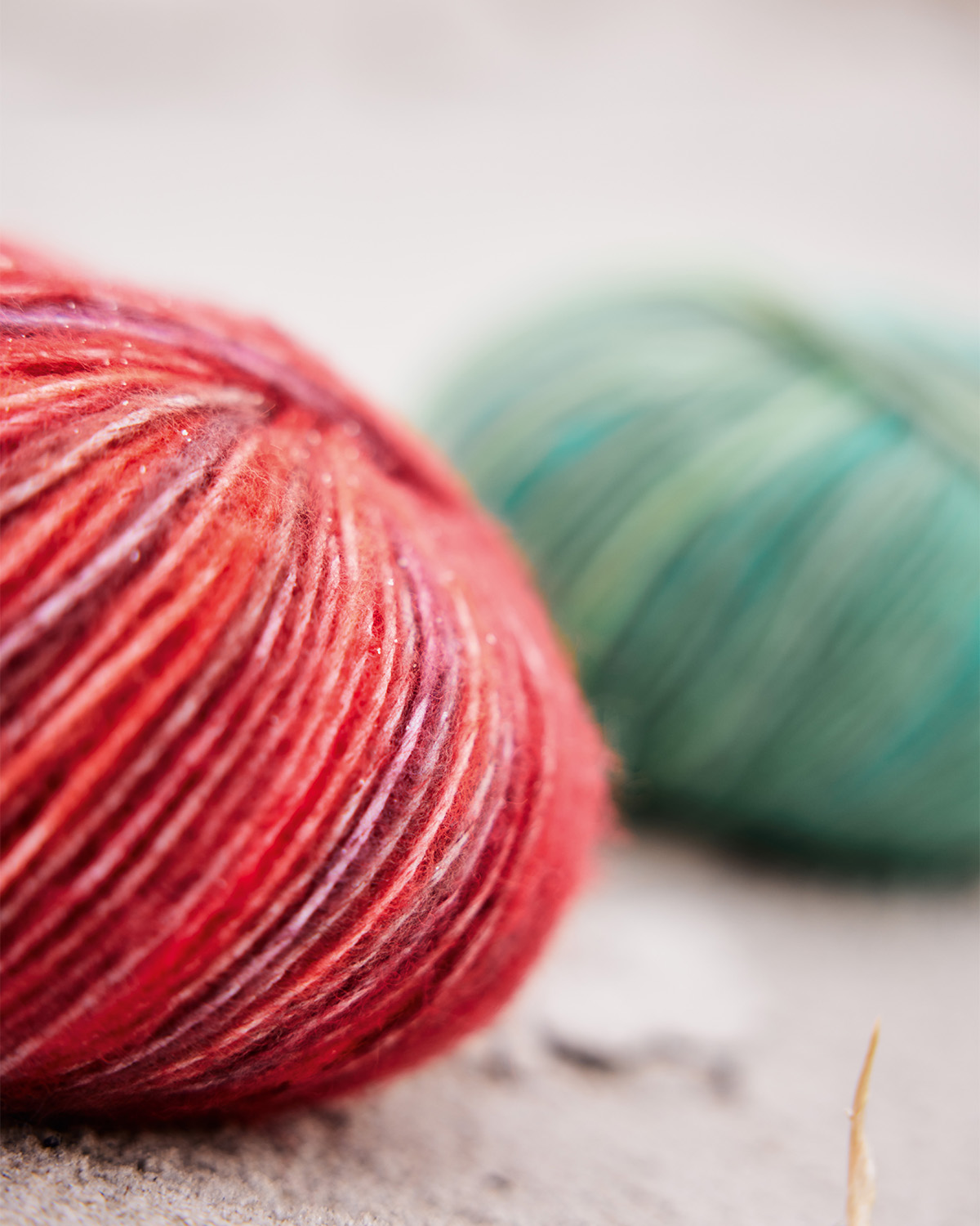 Soffilo-lanka (puhallettu lanka), jossa baby alpakkaa ja merinokuituja. Langassa värivaihteluita.
