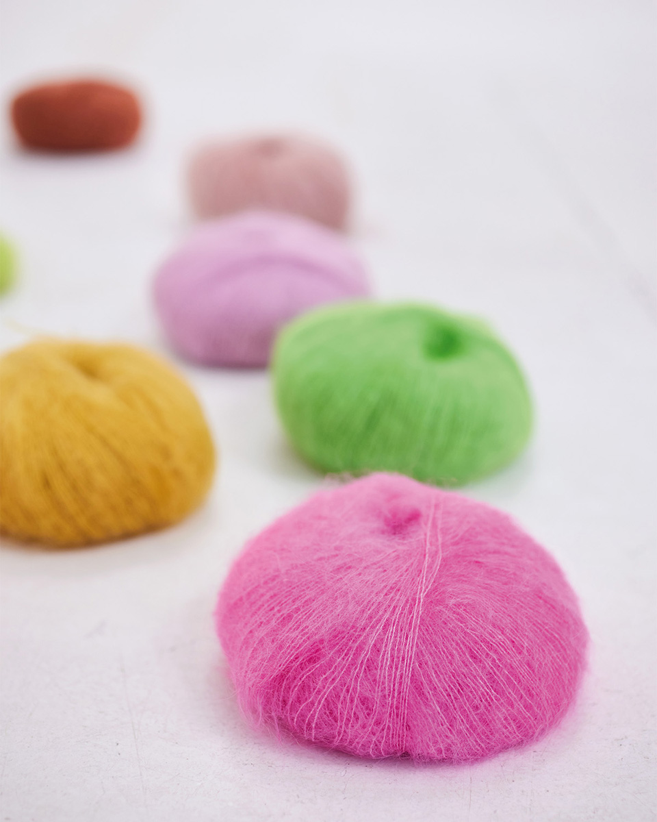 70 % Mohair, 30 % SilkkiSaatavilla olevat värit